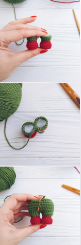 – Gazzal Baby Cotton 50g/165m, color #3439 (dark red), 3449 (green), 3445