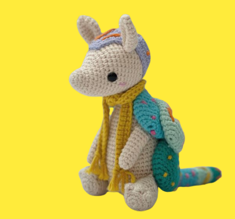 – Using the remaining tail, sew the torso to the base of the head.