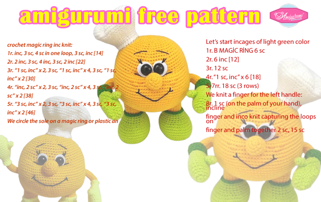 sc, inc, 6 sc; knit on the body: 6 sc, inc