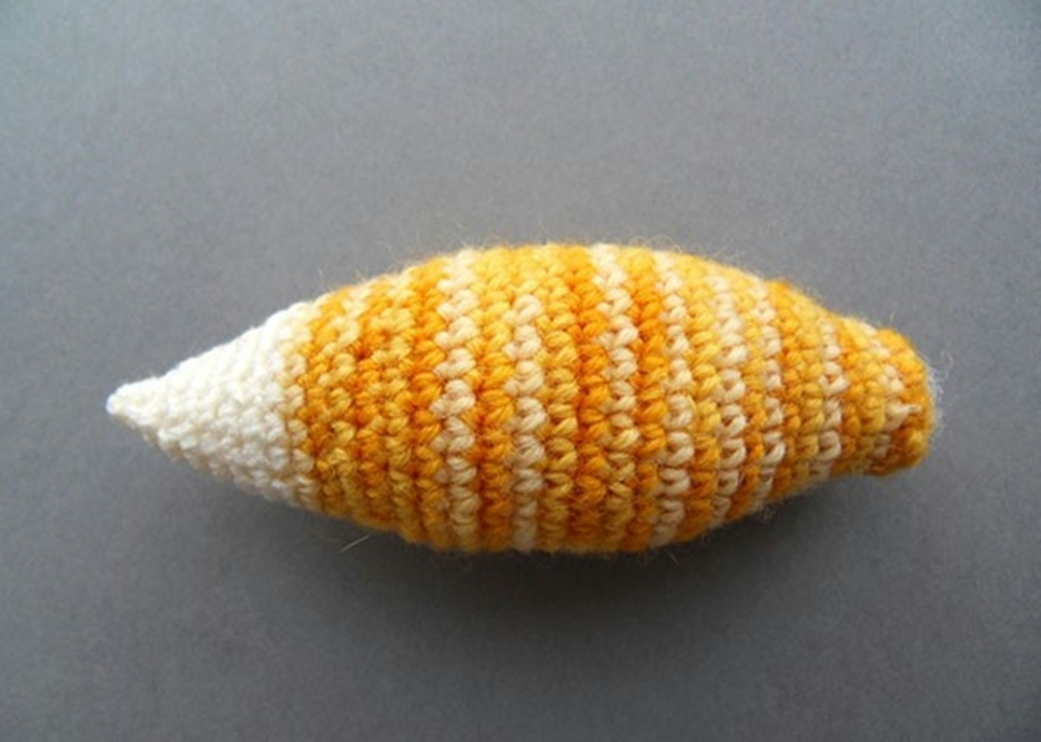 The sausage is knitted with toe knitting needles (no seams), stuffed with sintepuh.