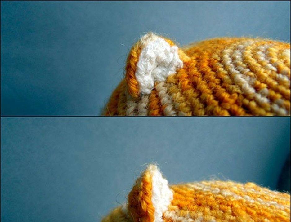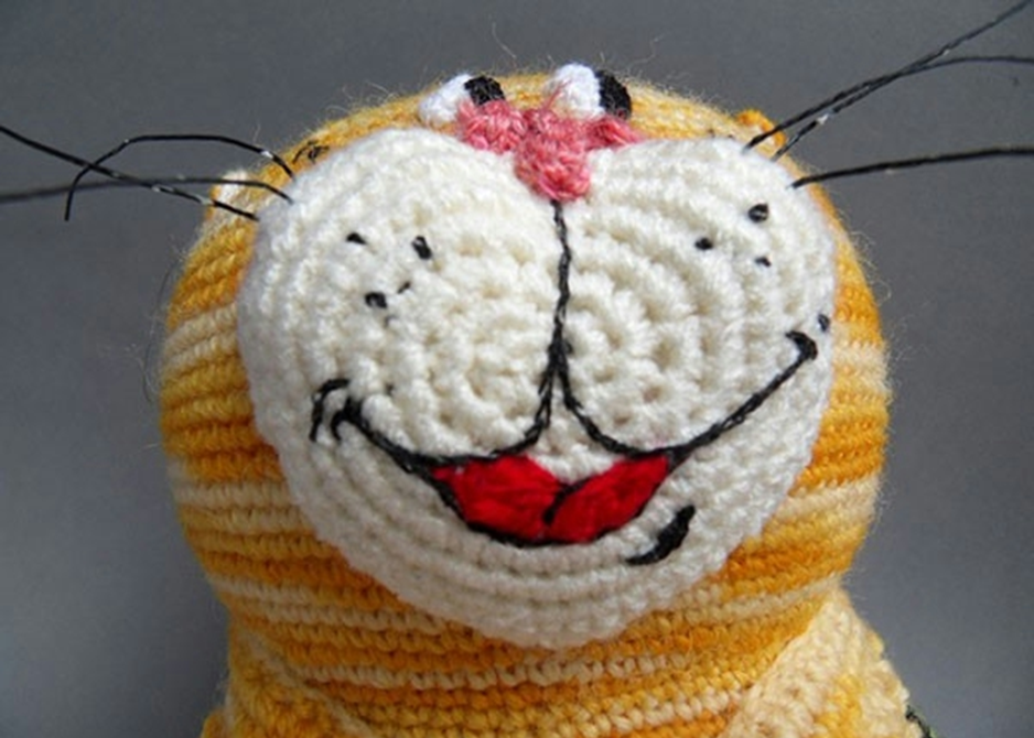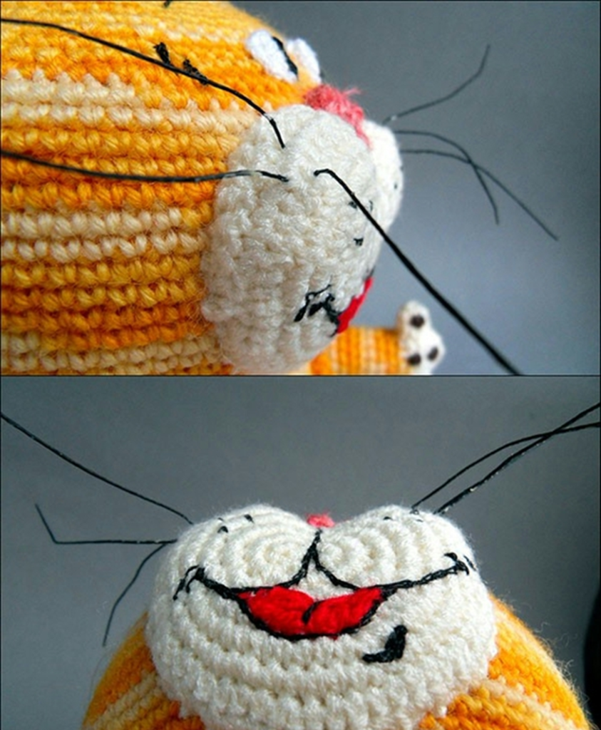 Sew on the ears, nose and eyes. They can be taken ready-made, can be cut from felt or other dense fabric. I love all the details of knitting. By the way, do not forget about mimic wrinkles on the muzzle