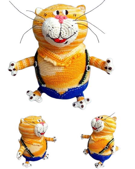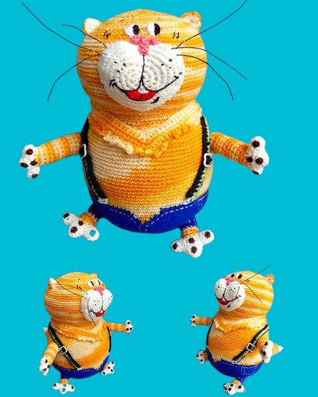 Materials: fine yarn (wool, cotton, acrylic) of blue, white and yellow-red (better than sectional dyeing) color, a little black, dark green and light green yarn, copper wire, sintepukh (or other filler), embroidery threads (black, red, dark brown), accessories for suspenders, fishing line (or something suitable) for a mustache.